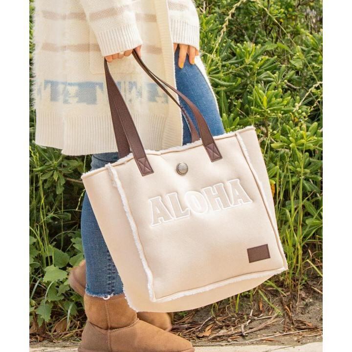 ハワイアン トートバッグ ムートン ムートンバッグ ハワイアン雑貨 Kahiko ハワイ 可愛い 冬バッグ ロゴ ALOHA もこもこ プレゼント ギフト 母の日 誕生日 LocoLoco ロコロコ