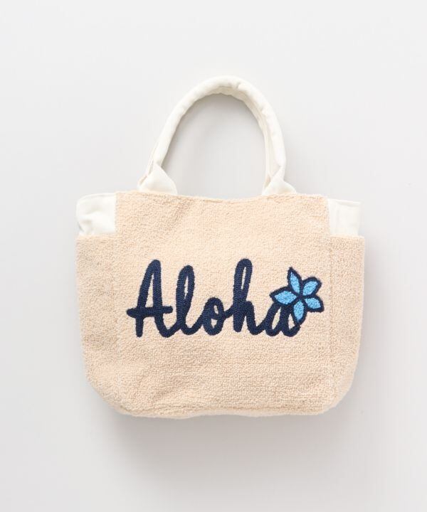 後ろに刺しゅうされた、シンプルなALOHAのデザインを前に持っても素敵です。