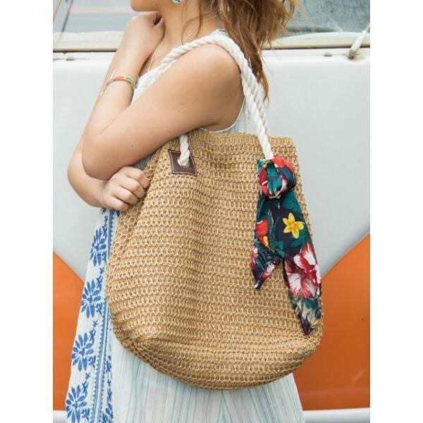 ハイビスカスやプルメリア、鮮やかなHAWAIIの風景を思い出させるファブリックが持ち手に施されたミニバッグ。、涼しげなペーパー素材はビーチコーディネイトにピッタリです。HAWAIIの風に揺れるスカーフがポイントです。