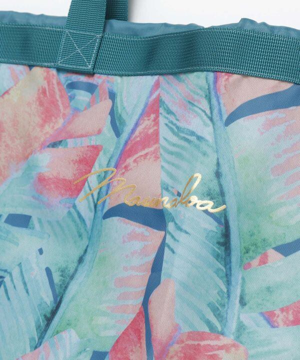 ハワイの景色を思い出させてくれるような、鮮やかなバナナリーフが描かれた、ポリエステル素材のガーメントバッグ。